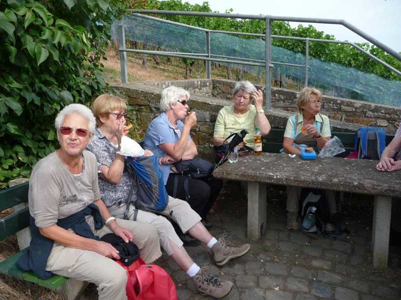 Im Bus wurden dann noch Doris Gohsens, Roswitha Meurer und Benita Schäffer für ihre 20. Teilnahme an einer Ahrwanderung mit der obligatorischen „Wander-Mösch“ geehrt.