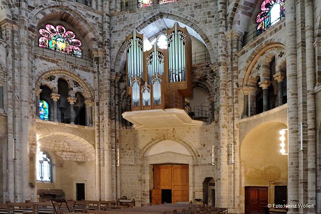 Herr H.-G. Haase, ein ausgewiesener Fachmann, erläuterte uns die Baugeschichte der Kirche von dem ursprünglich römischen Memorialbau bis zu den Erweiterungsbauten im Stil der „Staufischen Romanik“. Der spätantike Ovalbau ist von einer Kuppel mit einem Durchmesser von 23,70 m zu 19,80 m überspannt. Das 1219-1227 zum Schutz und zur Befestigung über dem Ovalbau errichtete Dekagon war zur Zeit seiner Entstehung der größte freitragend überwölbte Zentralbau nördlich der Alpen. Im Interieur beeindruckten u.a. insbesondere die Fenster von Georg Meistermann und Wilhelm Buschulte.