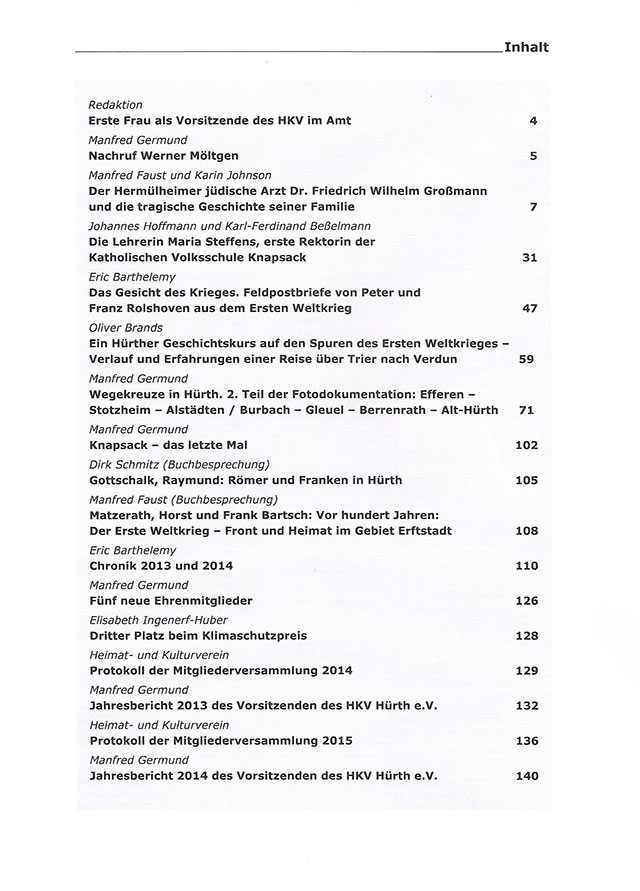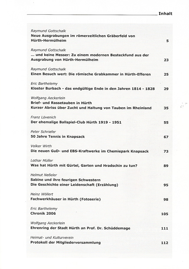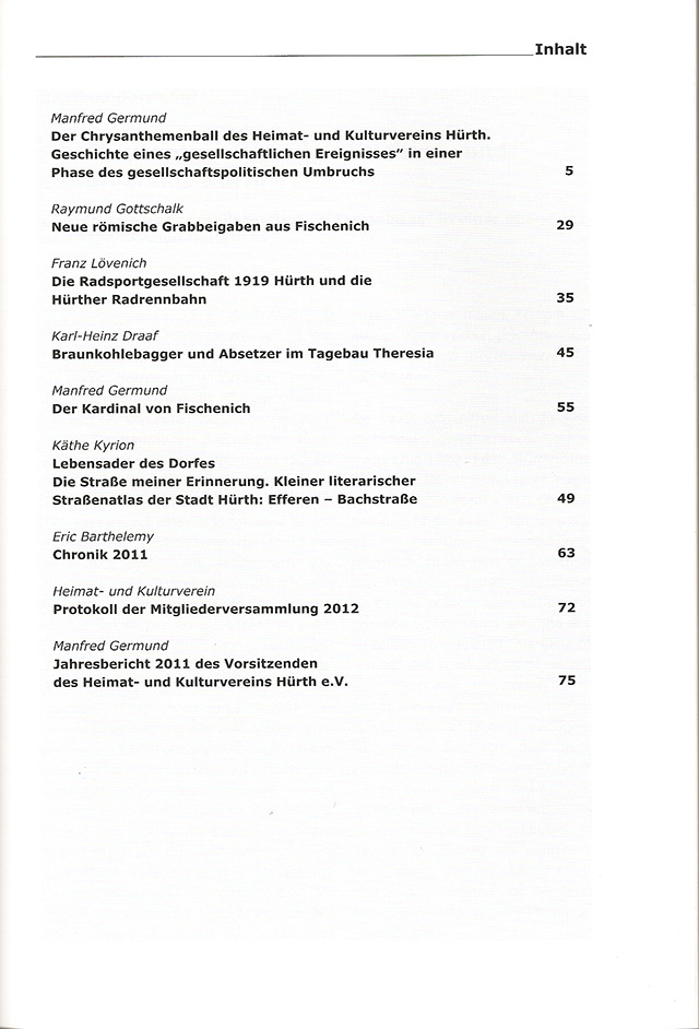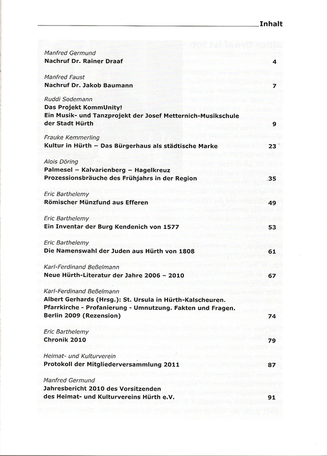 Einige typische Themenbereiche in den jüngeren Ausgaben der Hürther Beiträge (ISSN 1868-4351):